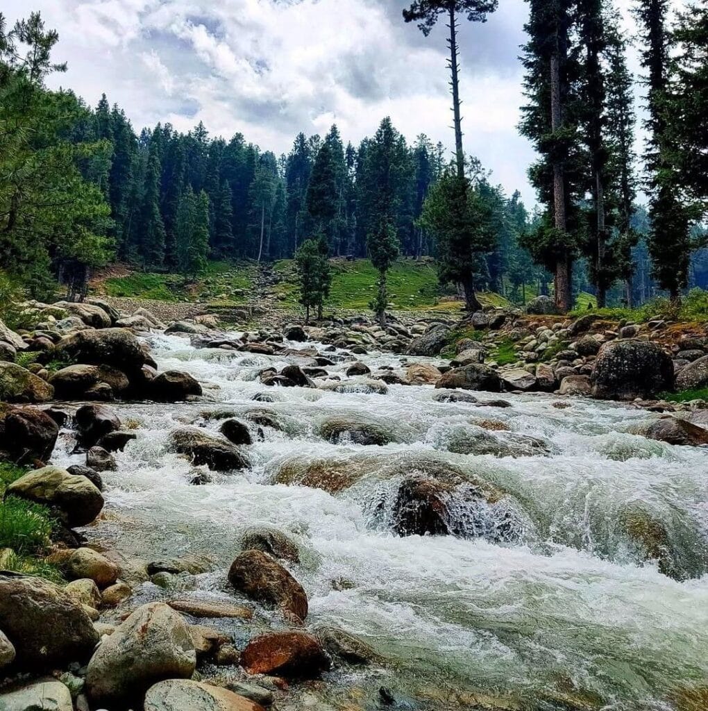 The Doodh Ganga is the most frequented spot by the visitors to Yusmarg. Its white and milky water is named Doodh Ganga, meaning “milk river” in English, when it flows quickly. The Doodh Ganga river is at a walking distance of about 3 km from the main meadow. You can walk along the river or choose a horse ride to reach the river.